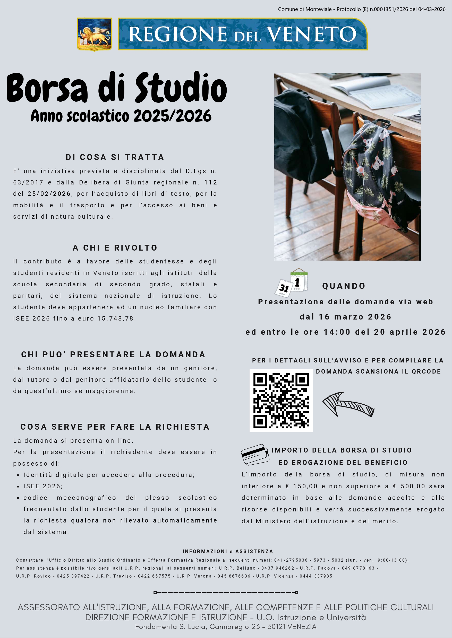 La Giunta regionale con deliberazione n. 112 del 25.02.2026 ha approvato l’intervento di cui all’oggetto volto a concorrere alle spese che le famiglie sostengono per l’istruzione dei propri figli per l'anno scolastico 2024/2025.
